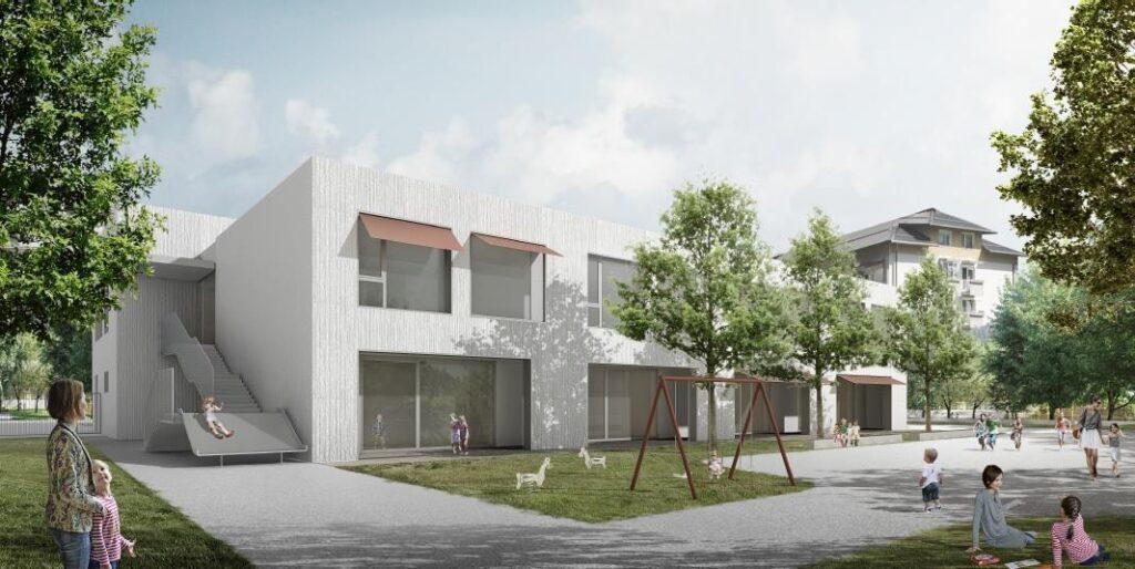 Osnutek idejne zasnove za nov Vrtec Najdihojca v Litiji, ki ga je izdelalo podjetje Jereb in Budja arhitekti, projektiranje .