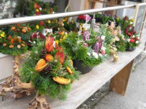 Naročila za izdelavo prvonovembrskih aranžmajev že sprejema. Cela vrsta polsuhih dekoracij je že pripravljenih in so na ogled pred trboveljsko cvetličarno, tiste iz rezanega svežega cvetja pa bodo narejene tik prej, da bodo potem čim dlje služile svojemu namenu. Zasavska cvetličarka še predobro razume, da mnogi težko dostavijo cvetlične dekoracije na pokopališče, zato bo poskrbela za brezplačen prevoz ikeban na vsa zasavska pokopališča. Prav tako poskrbi tudi za vse žalne dekoracije in dostavo le teh.