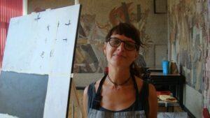 Nasmejana Mojca Senegačnik nam je zaupala, da je prvič v Zasavju. Pohvalila je organizatorje in izrazila obžalovanje, ker dogodek letos ni odprt za javnost. Tudi ona spada v abstraktne slikarje, ki so letos v večini.