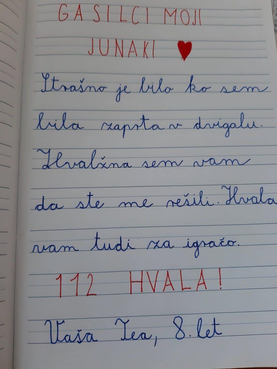 Starša sta iz srca hvaležna ekipi 112 in gasilcem, ki so se nemudoma odzvali, saj sta bila sama tako rekoč nemočna.