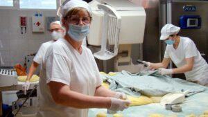 V krofarni pa toplo, dišeče, mamljivo. Stroj za valjanje testa na veliko mizo pošilja kose razvaljanega testa, ki jih pridne roke spremenijo v krof, ki pred cvrtjem potuje še v vzhajalnik. Kuharica Silva Venko je v enainštiridesetih letih naredila nešteto krofov. “Krofe smo nekoč delali iz dveh plasti testa, vmes je bila marmelada, ki pa je včasih že med peko pobegnila. Zdaj je to drugače, marmelado vbrizgamo v že pečen krof. V vseh teh letih doma nisem pekla krofov. Kmalu bom upokojenka, pa se jih bom lotila tudi v domačem okolju.”