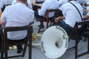 Miha Bantan igra trobento v Rudarski godbi Hrastnik
