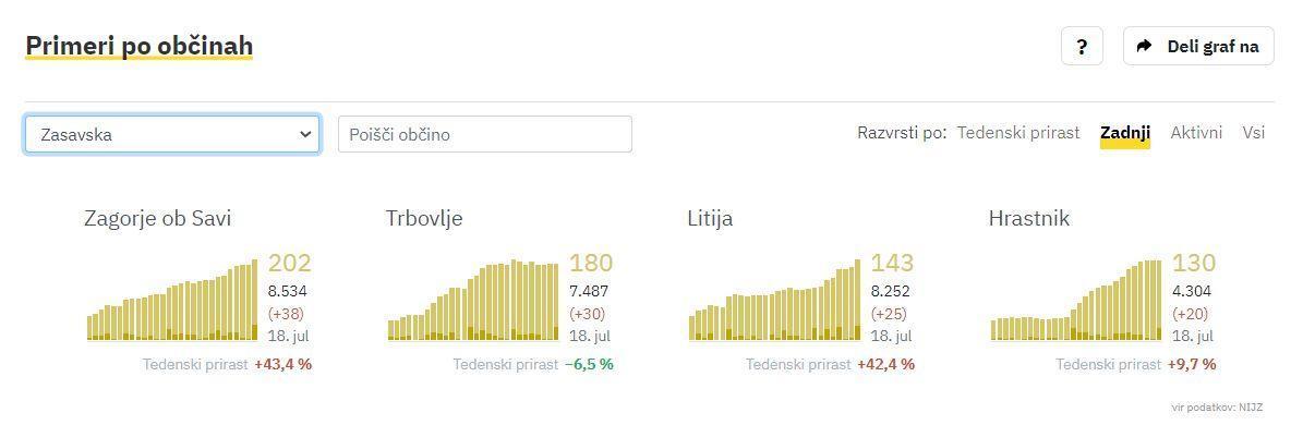 V Zasavju trenutno 655 potrjenih okužb, največ v Zagorju