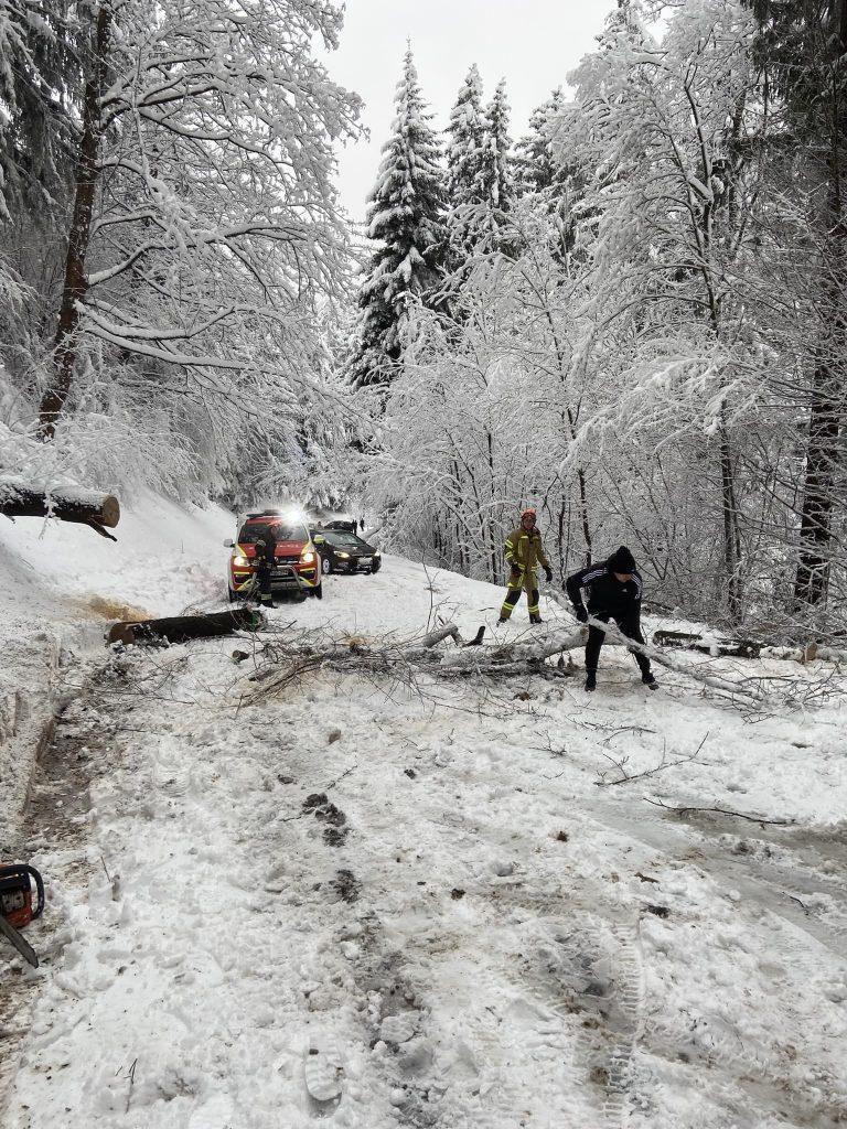 O večjih težavah poročajo tudi na cesti Trbovlje – Prebold, kjer so gasilci sicer že odmaknili podrta drevesa, a je cesta še vseeno slabo prevozna.