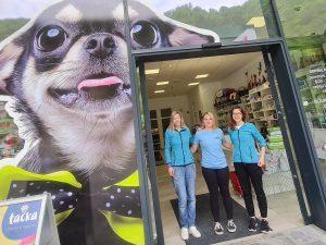 V Tačkini poslovalnici nudijo širok nabor kakovostnih izdelkov za male živali ter tudi nekaj za velike, kot so priboljški za konje… ter zdravila za veliko prakso po navodilih veterinarja.