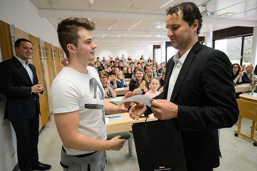 Poleg zlatega priznanja je bil nagrajen še z 250 enotami (evri) v Triglav skladih, 3-dnevno plačano delovno prakso v podjetju, ki se ukvarja z osebnim finančnim svetovanjem Vizovišek in partnerji, d. o. o., prejel pa je tudi knjigo Osebni finančni načrt ter še nekaj praktičnih nagrad.