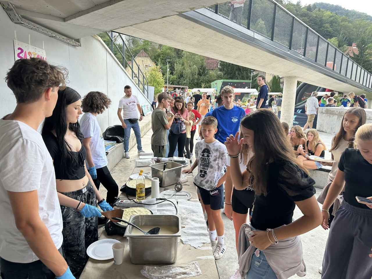 Da pa sodelovanje ni le lokalno, je poskrbela skupina udeležencev mednarodne mladinske izmenjave “We like to move it”. Ti so poskrbeli za dodatno zabavo, brezplačno so ponujali poslikavo obraza, pletli kitke in se preizkusili v peki palačink, ki so jih ponujali obiskovalcem. “Dišeče palačinke in dobra volja so privabile množico – vrsta se je vila po celem Športnem parku Ledenica.”