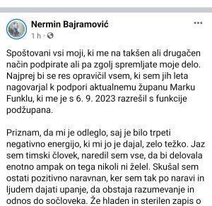 Novico o razrešitvi je objavila Občina Hrastnik zelo na kratko – da ima Občina Hrastnik od današnjega dne le eno podžupanjo Katjušo Laznik. Nerminu Bajramoviću pa se zahvaljujejo za doprinos do tega dne.