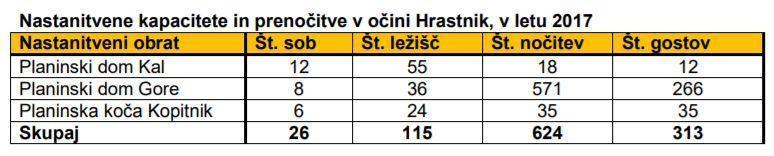 Leta 2013 je Hrastnik imel 333 nočitev, leta 2014 samo še 243. Številka pa se je drastično spremenila predlani in lani, ko so se nočitve v Gorah tako povečale, da so 2016 skupno zabeležili kar 675 nočitev.