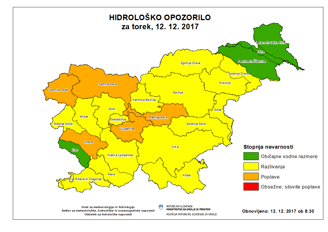 Od torka zjutraj do sredine noči na sredo bo padlo še od 20 do okoli 40 litrov dežja na kvadratni meter. Padavine se bodo nadaljevale tudi do srede dopoldne, vendar bo po nižinah povečini snežilo. Nova epizoda s padavinami, po nižinah dež, se bo na zahodu začela v četrtek zjutraj, napovedujejo na ARSO.