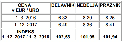 Cena višja za 0,64 evra na uro