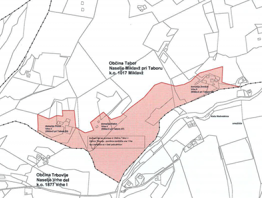 Za lastnike teh kmetij, ki kot poudarjajo, so vedno bili, so in želijo tudi v prihodnje biti občani občine Trbovlje, je takšno neodgovorno preoštevilčevanje stavb nedopustno. S svojo pobudo želijo, da se ta povojna anomalija v hišnih številkah odpravi. Površina zemljišča, ki bi bil predmet prenosa je okoli 11 hektarov.