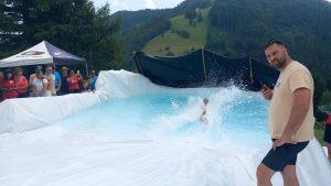 Družine so se pretežno pripeljale z avtomobili, tudi avtobus iz Zagorja je našel pot navzgor. Bilo je kar nekaj kolesarjev, verjetno pa se je kdo vročini navkljub, napotil tudi peš. Na travniku za Planinskim domom Vrhe je bilo po trinajsti uri živahno. Najmlajši so bili tisti, ki so se prvi udeležili dričanja. Dričanje se sicer največ izvaja na snegu, vendar je spuščanje po mokri foliji in štrbunk v bazen sredi poletja pravi užitek.