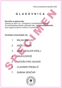 Na letošnjih volitvah za predsednika Slovenije, ki bodo potekale v nedeljo, 23. 10. 2022, boste izbirali med štirimi kandidati in tremi kandidatkami. Vsi bodo kandidirali prvič. To so: Milan Brglez (Predlagatelj: Socialni demokrati in Gibanje Svoboda), Anže Logar (Predlagatelj: dr. Romana Jordan – skupina volivcev), Janez Cigler Kralj (Predlagatelj: Nova Slovenija – krščanski demokrati), Miha Kordiš (Predlagatelj: Levica), Nataša Pirc Musar (Predlagatelj: Biserka Marolt Meden – skupina volivcev), Vladimir Prebilič (Predlagatelj: VESNA – zelena stranka) in Sabina Senčar (Predlagatelj: Državljansko gibanje Resni.ca).
