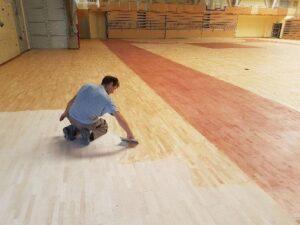 Parket je bil prebrušen, sanirano kar je bilo potrebno, našteva direktor Zavoda za šport Edvard Bravec, nato so parket še trikrat lakirali, tonirali s temnejšo barvo, začrtali igrišča in na koncu še enkrat vse skupaj polakirali.