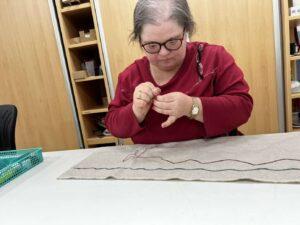 Tanja Skubic se iz Trbovelj v VDC pripelje s kombijem. Zjutraj se najprej preobleče in preobuje, nato pa pohiti v delavnico. Povedala je, da vedno ob prihodu lepo pozdravi vse mentorje in ostale uporabnice. Ob našem obisku VDC-ja je simpatična Tanja ravno izdelovala stebelni vbod za prodajo torb, ki jih prodajajo pod znamko Prešito. Najljubše aktivnosti v zagorski organizaciji Trboveljčanka nima, prav vse ji je všeč. Kot je dodala, zelo rada hodi v VDC in vedno pride z dobro voljo. Skubiceva ima tudi podporne storitve. Vsakič nestrpno pričakuje prijateljico, ki se v sistemu podpornih oseb z njo odpravi po nakupih in na sprehode. Po sprehodu si velikokrat privoščijo tudi kakšno kavico. Trenutno pa je v pričakovanju prav posebnega dogodka: “Mama je kupila karte za koncert Helene Blagne, se že zelo veselim,” nam je navdušeno zaupala.