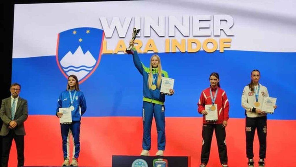 Ne za eno, Zasavje je bogatejše za dve evropski prvakinji v kickboxingu. Poleg Eve Hribar (TUKAJ), je naslov evropske prvakinje v kategoriji kadetinj do 60 kilogramov osvojila tudi Lara Indof, sicer članica zagorskega kluba Pon Do Kwan. Ta je na tekmovanje prišla kot vodilna tekmovalka na svetovni WAKO lestvici, ki predstavlja uradno svetovno jakostno lestvico v kickboxingu. Prav zato ji v prvem krogu ni bilo potrebno tekmovati. A je zamujeno nadoknadila v nadaljevanju, saj je uspela premagati vse svoje nasprotnice ter stopiti na najvišjo stopničko zmagovalnega odra.