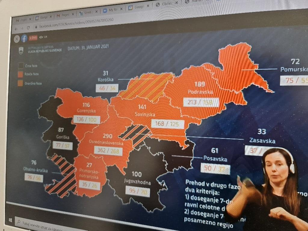 Trenutno je 5 regij črnih, ampak črne so trenutno, podatki pa so “stari”. Danes objavljeni podatki so bolj spodbudni za Obalno-kraški regijo in tudi za Zasavsko, so povedali na novinarski konferenci vlade. V Zasavski regiji so razmere boljše kot prejšnjo sredo, zato je naša regija črna, a črtkana. število potrjenih primerov zadnjih 7 dneh znaša 33, prag za prehod v rdečo regijo pa je pri 37. Torej smo krepko zakorakali v rdečo fazo, ne glede na to, pa za Zasavje veljajo ukrepi iz črne faze. Ukrep, ki je na ulice včeraj in v soboto poslale več kot 1000 Zasavcev, je zaprtje šol in vrtcev.