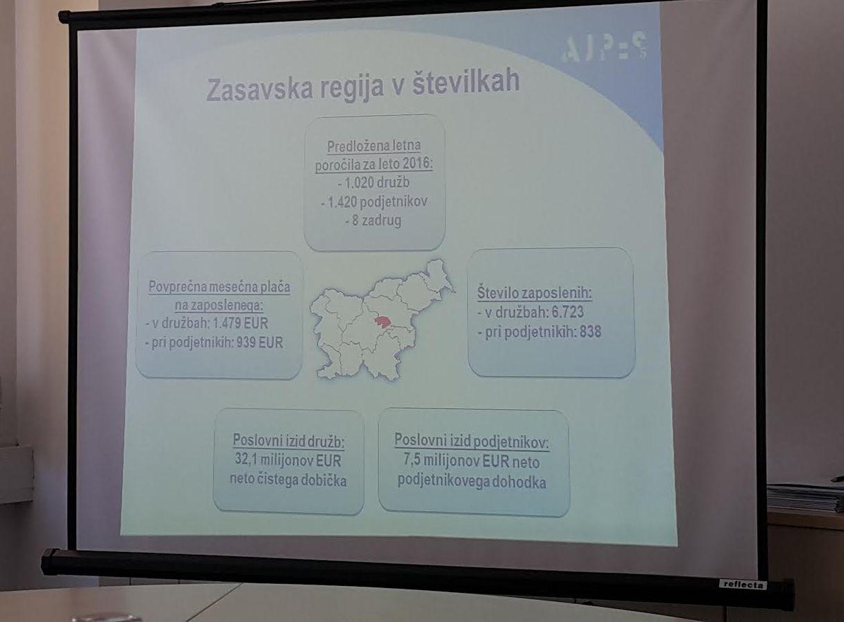 Od slovenskega povprečja zasavska regija (Zagorje, Trbovlje, Hrastnik in Litija) izstopa navzgor po vseh prihodkih gospodarskih družb in podjetnikov, žal pa od povprečja zaostajamo po številu zaposlenih.