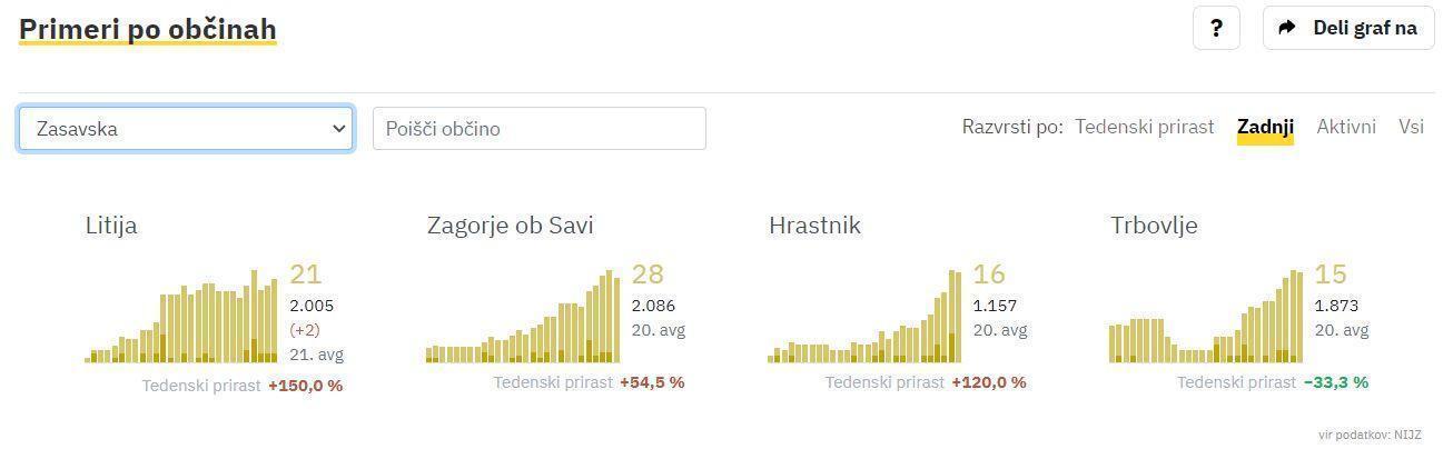 Iz le nekaj primerov so številke v vsaki od zasavskih občinah že na 10 in več. V Zagorju so pred dvema dnevoma imeli že 28 okuženih, število dvajset so prečkali tudi v Litiji. V sosednjih Radečah, kjer so tudi v “najhujših” časih imeli le nekaj posameznikov, štejejo že 6 covid primerov.